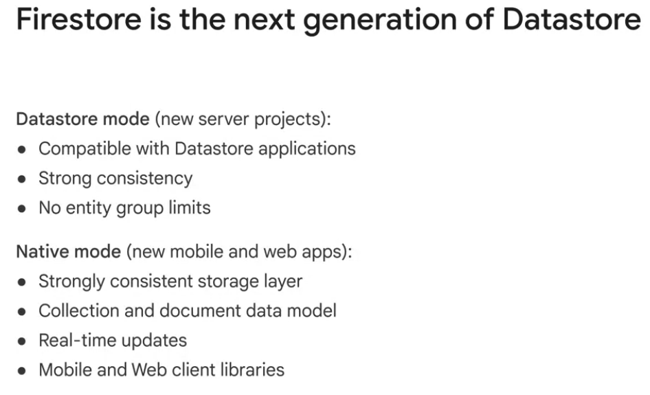 ㅁ Datastore 모드에서는 기존 Cloud Datastore와 호환됩니다.